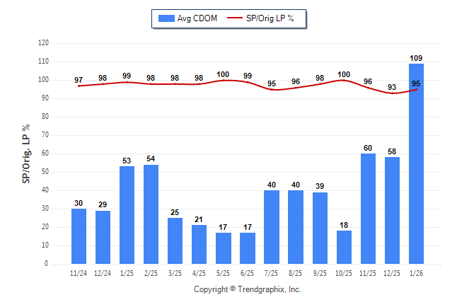 January 2026 Average Continuous Days on Market trend was Rising and Sold/Original List Price Ratio Remains Steady**
