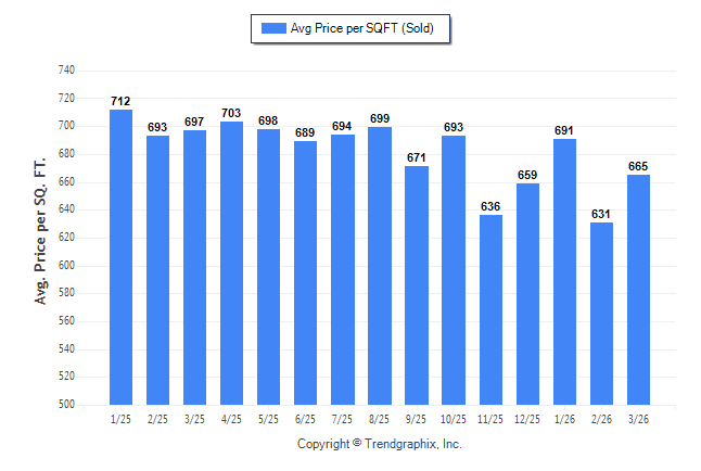 March 2026 Average Sold Price per Square Footage was Neutral**
