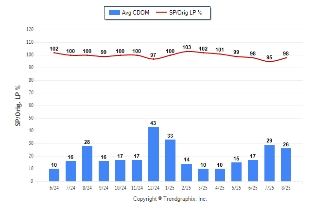 August 2025 Average Continuous Days on Market trend Remains Steady and Sold/Original List Price Ratio Remains Steady**
