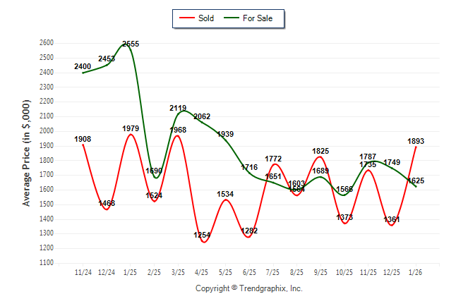January 2026 Average For Sale Price was Neutral and Average Sold Price was Appreciating**