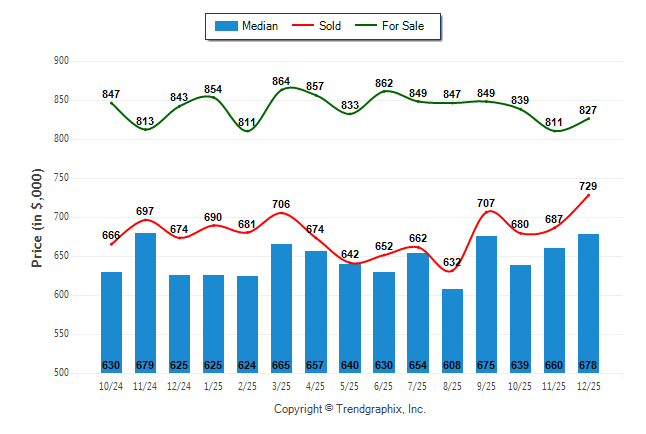 December 2025 Median Price was Appreciating, Avg. For Sale Price was Neutral, and Avg. Sold Price was Appreciating**