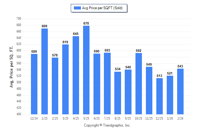 February 2026 Average Sold Price per Square Footage was Neutral**