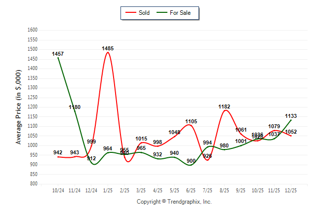 December 2025 Average For Sale Price was Appreciating and Average Sold Price was Neutral**