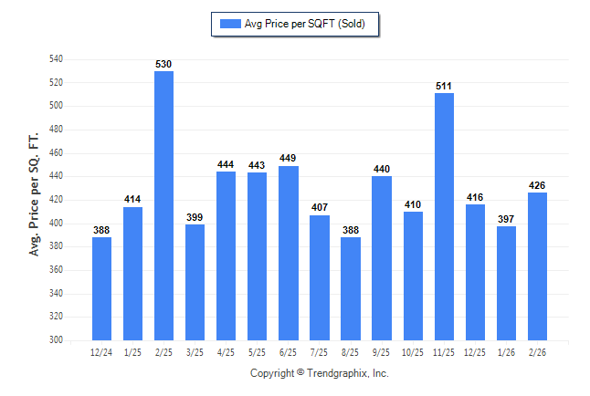 February 2026 Average Sold Price per Square Footage was Neutral**