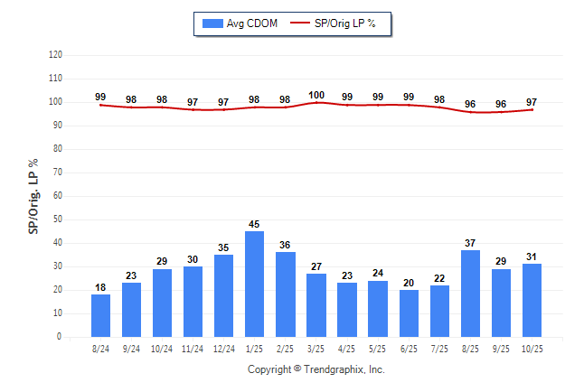 October 2025 Average Continuous Days on Market trend Remains Steady and Sold/Original List Price Ratio Remains Steady**