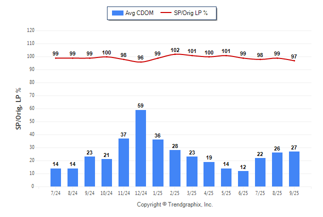 September 2025 Average Continuous Days on Market trend was Rising and Sold/Original List Price Ratio was Falling**