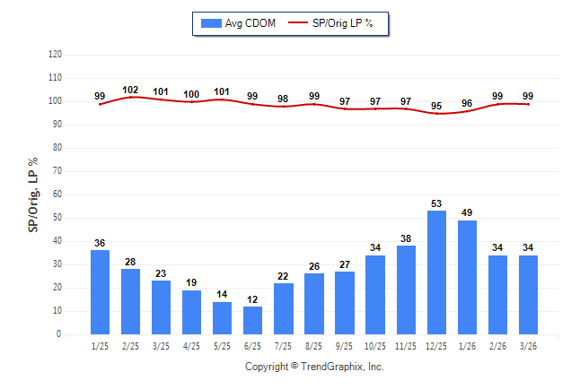 March 2026 Average Continuous Days on Market trend was Falling and Sold/Original List Price Ratio was Rising**