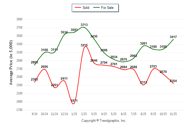 November 2025 Average For Sale Price was Appreciating and Average Sold Price was Depreciating**