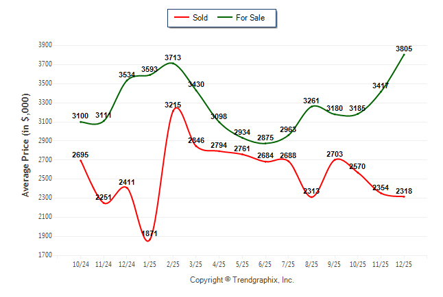 December 2025 Average For Sale Price was Appreciating and Average Sold Price was Depreciating**