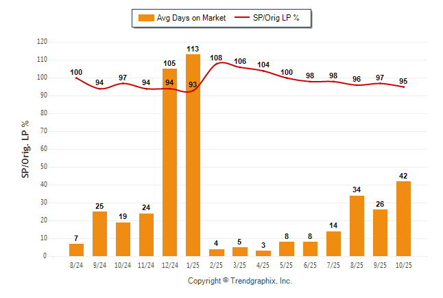 October 2025 Average Days on Market trend was Rising and Sold/Original List Price Ratio was Falling**