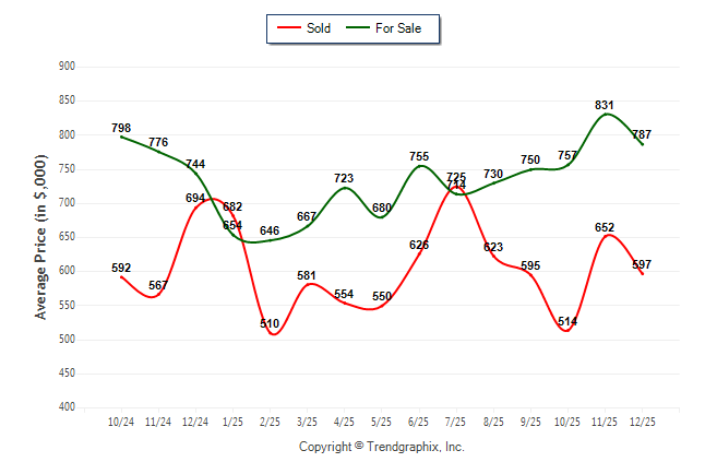December 2025 Average For Sale Price was Neutral and Average Sold Price was Neutral**