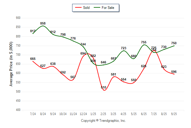 September 2025 Average For Sale Price was Appreciating and Average Sold Price was Neutral**