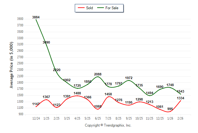 February 2026 Average For Sale Price was Depreciating and Average Sold Price was Neutral**