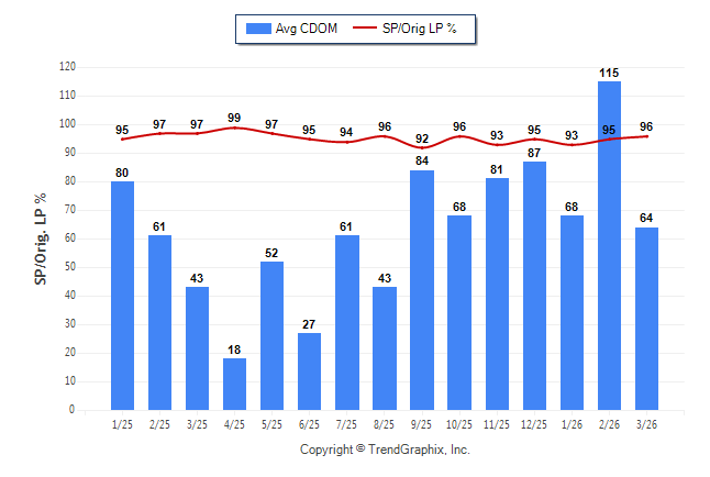 March 2026 Average Continuous Days on Market trend was Falling and Sold/Original List Price Ratio Remains Steady**