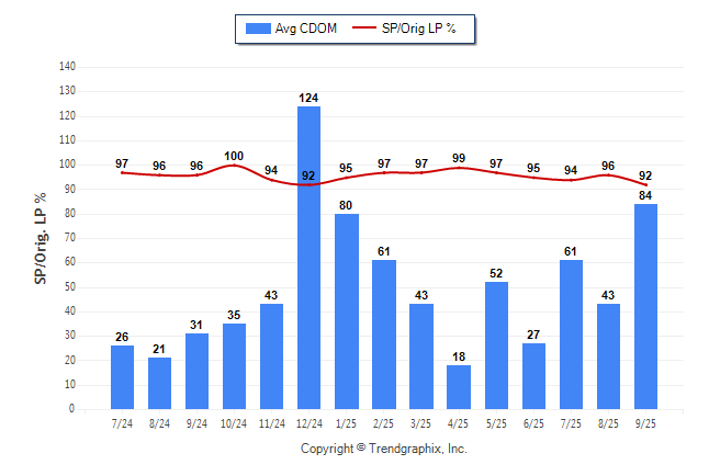 September 2025 Average Continuous Days on Market trend was Rising and Sold/Original List Price Ratio was Falling**