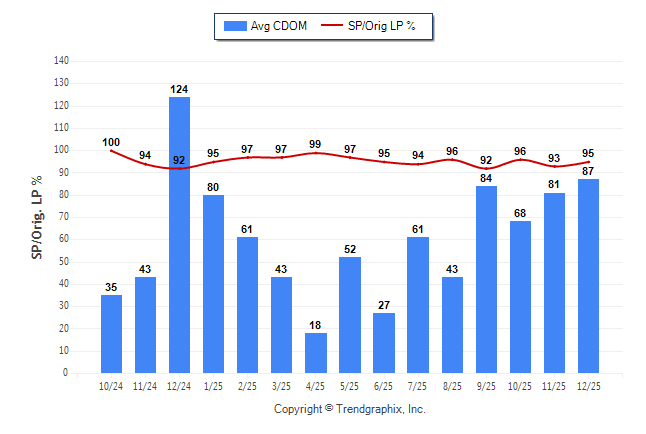 December 2025 Average Continuous Days on Market trend was Rising and Sold/Original List Price Ratio Remains Steady**