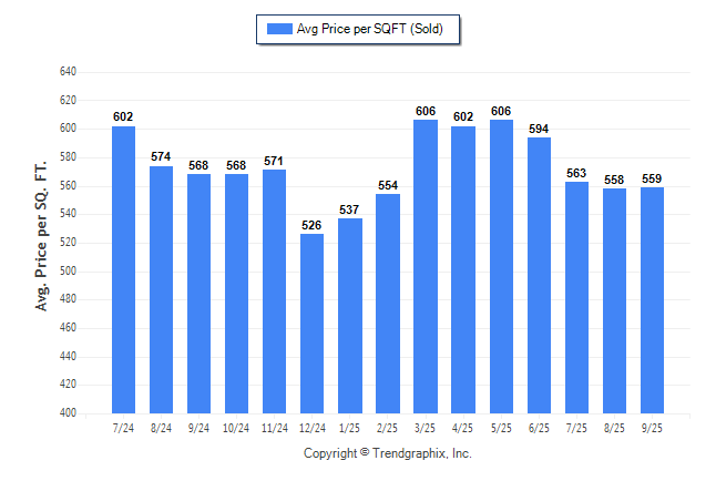 September 2025 Average Sold Price per Square Footage was Neutral**