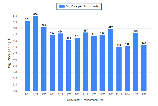 March 2026 Average Sold Price per Square Footage was Neutral**