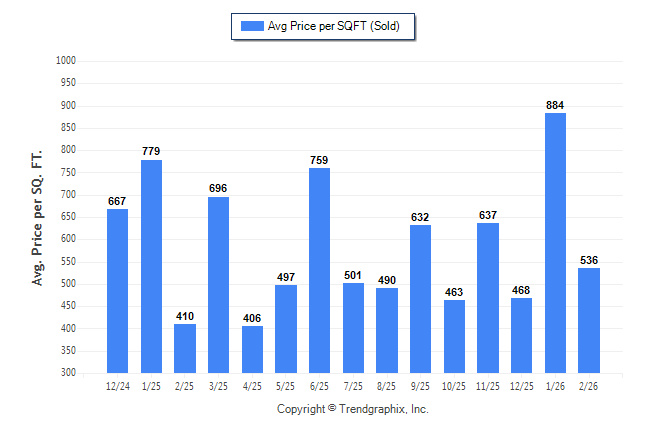 February 2026 Average Sold Price per Square Footage was Neutral**