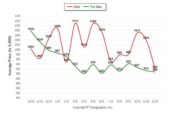 December 2025 Average For Sale Price was Depreciating and Average Sold Price was Neutral**
