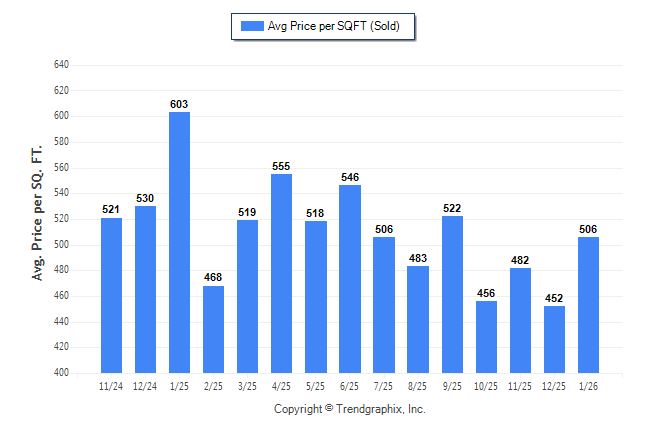 January 2026 Average Sold Price per Square Footage was Neutral**