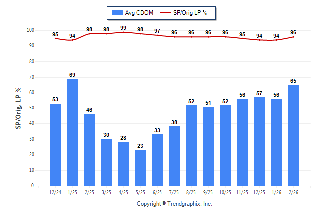 February 2026 Average Continuous Days on Market trend was Rising and Sold/Original List Price Ratio Remains Steady**