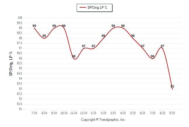 September 2025 Sold/Original List Price Ratio was Falling**