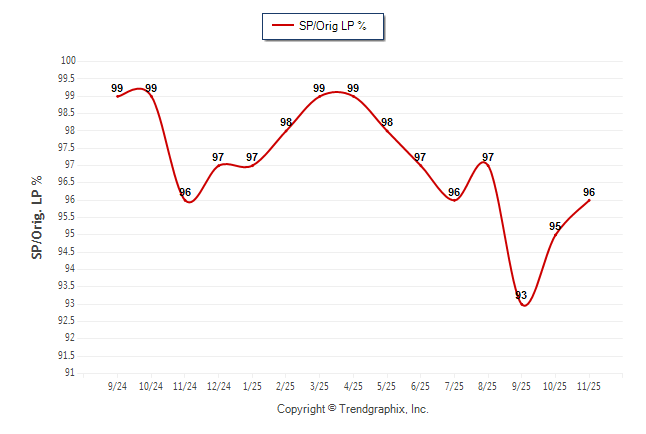 November 2025 Sold/Original List Price Ratio Remains Steady**