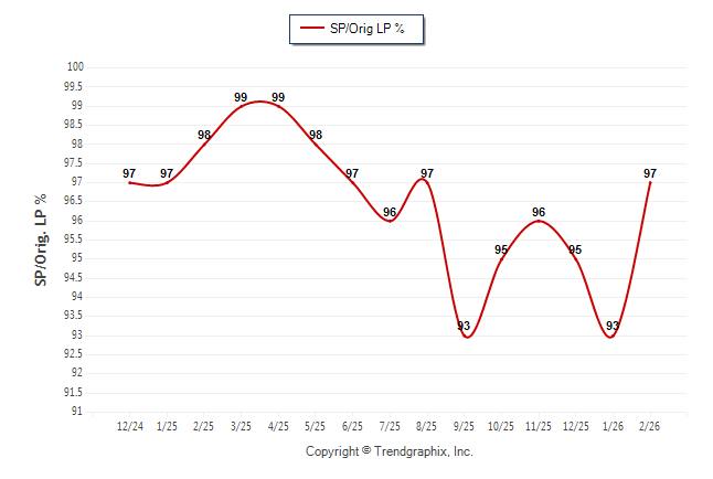 February 2026 Sold/Original List Price Ratio was Rising**
