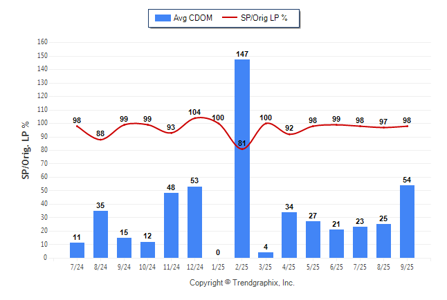 September 2025 Average Continuous Days on Market trend was Rising and Sold/Original List Price Ratio was Rising**