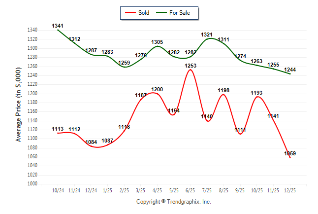 December 2025 Average For Sale Price was Depreciating and Average Sold Price was Depreciating**