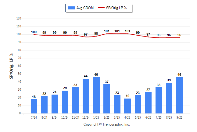 September 2025 Average Continuous Days on Market trend was Rising and Sold/Original List Price Ratio was Falling**