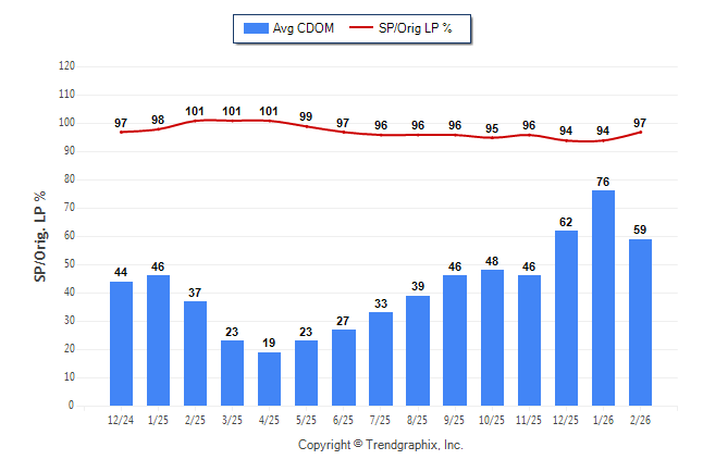 February 2026 Average Continuous Days on Market trend Remains Steady and Sold/Original List Price Ratio Remains Steady**