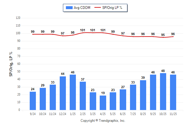 November 2025 Average Continuous Days on Market trend Remains Steady and Sold/Original List Price Ratio Remains Steady**