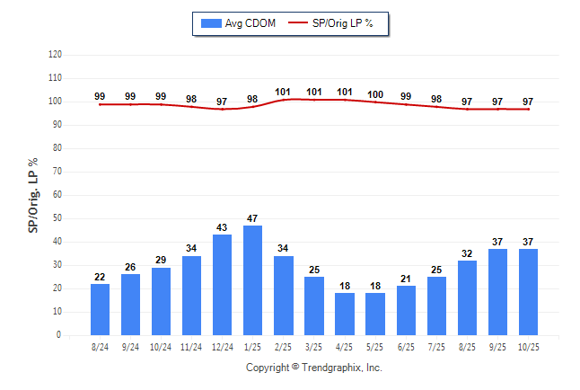 October 2025 Average Continuous Days on Market trend was Rising and Sold/Original List Price Ratio was Falling**