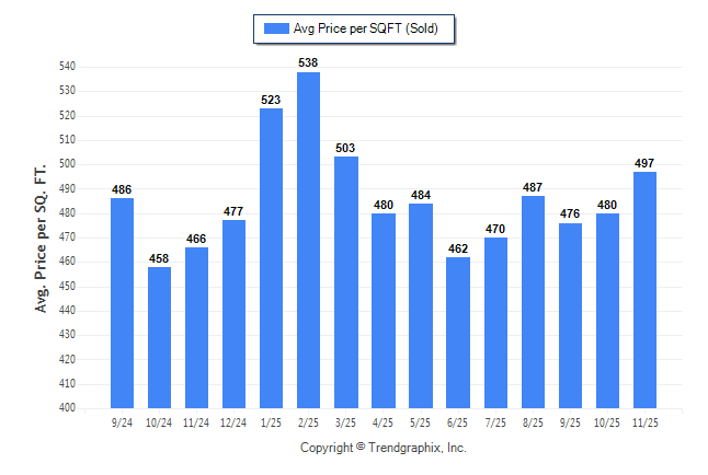 November 2025 Average Sold Price per Square Footage was Appreciating**