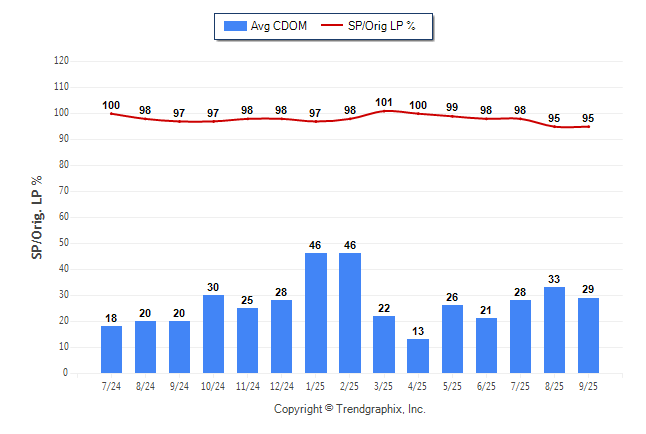 September 2025 Average Continuous Days on Market trend Remains Steady and Sold/Original List Price Ratio was Falling**
