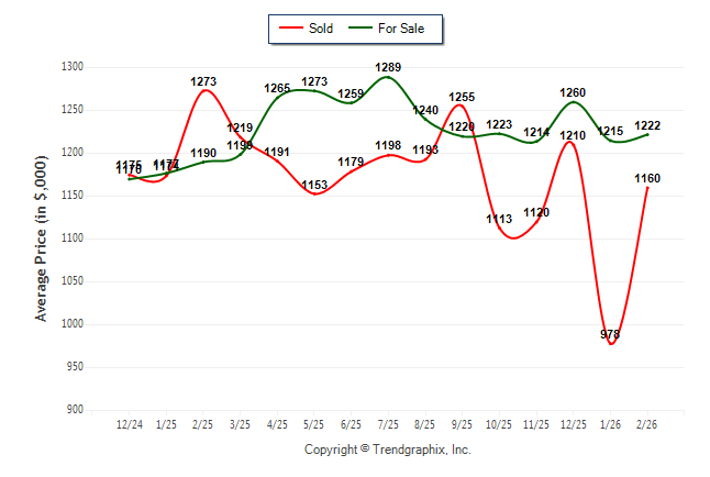 February 2026 Average For Sale Price was Neutral and Average Sold Price was Neutral**