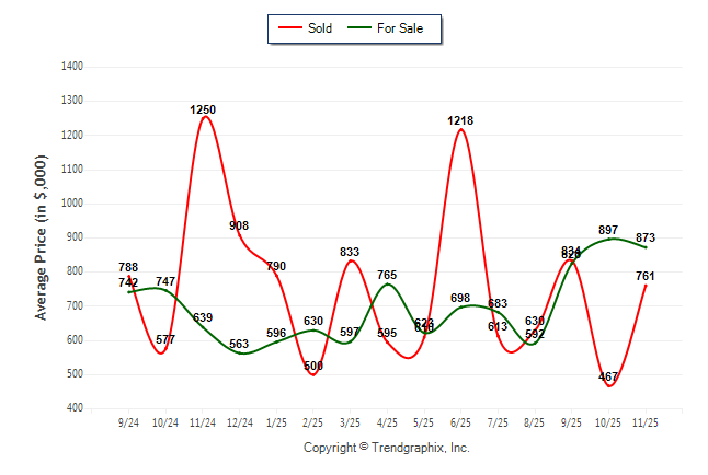 November 2025 Average For Sale Price was Neutral and Average Sold Price was Neutral**