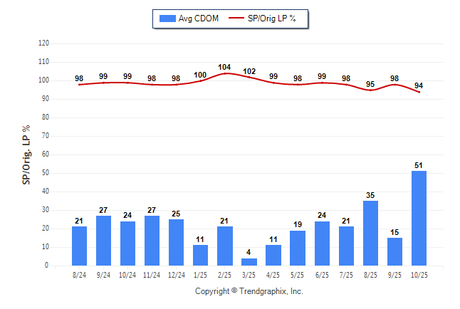 October 2025 Average Continuous Days on Market trend was Rising and Sold/Original List Price Ratio was Falling**