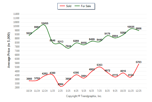 December 2025 Average For Sale Price was Neutral and Average Sold Price was Appreciating**