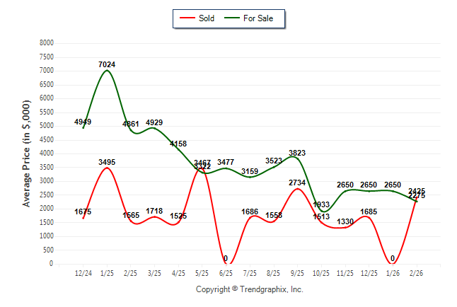 February 2026 Average For Sale Price was Depreciating and Average Sold Price was Appreciating**