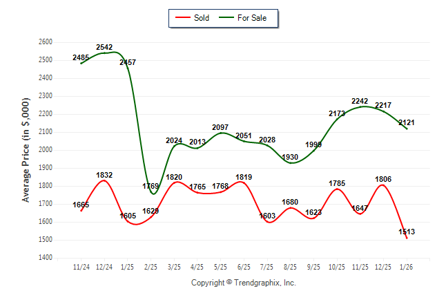 January 2026 Average For Sale Price was Neutral and Average Sold Price was Neutral**