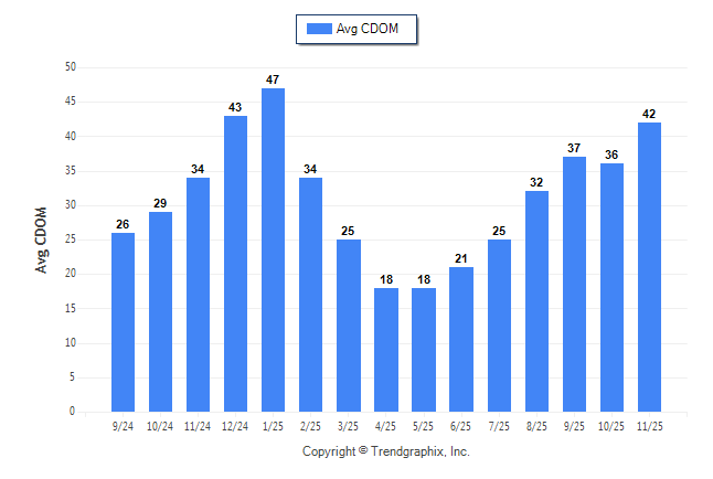 November 2025 Average Continuous Days on Market trend was Rising**