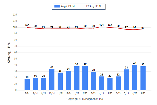 September 2025 Average Continuous Days on Market trend Remains Steady and Sold/Original List Price Ratio was Falling**
