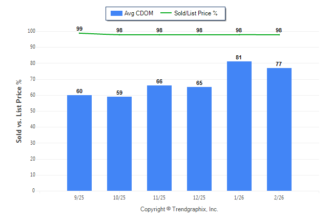 February 2026 Average Continuous Days on Market trend Remains Steady and Sold/List Price Ratio Remains Steady**