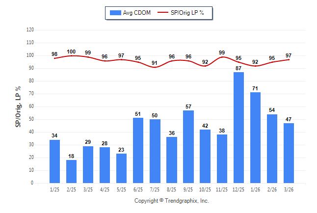 March 2026 Average Continuous Days on Market trend Remains Steady and Sold/Original List Price Ratio Remains Steady**