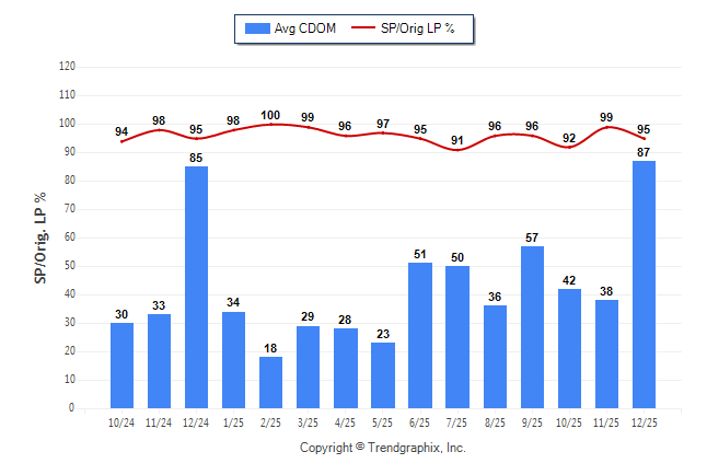December 2025 Average Continuous Days on Market trend was Rising and Sold/Original List Price Ratio Remains Steady**