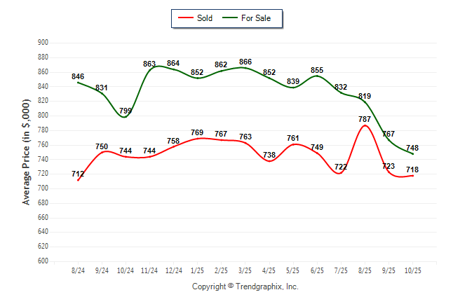 October 2025 Average For Sale Price was Depreciating and Average Sold Price was Depreciating**