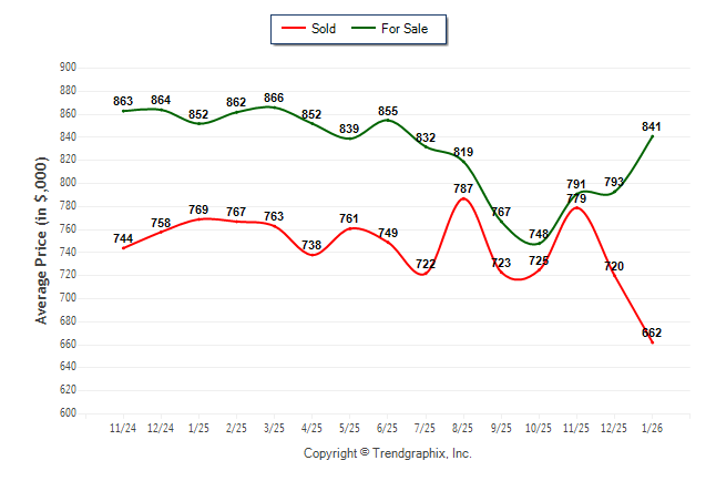 January 2026 Average For Sale Price was Appreciating and Average Sold Price was Depreciating**